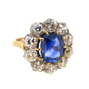 Antique Ceylon Sapphire & Diamond Cluster Ring