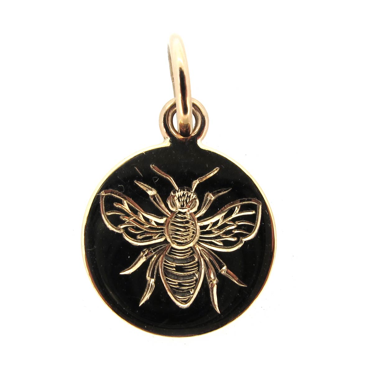 9 carat gold disc with engraved bee design. Diameter 13mm, depth 1mm.