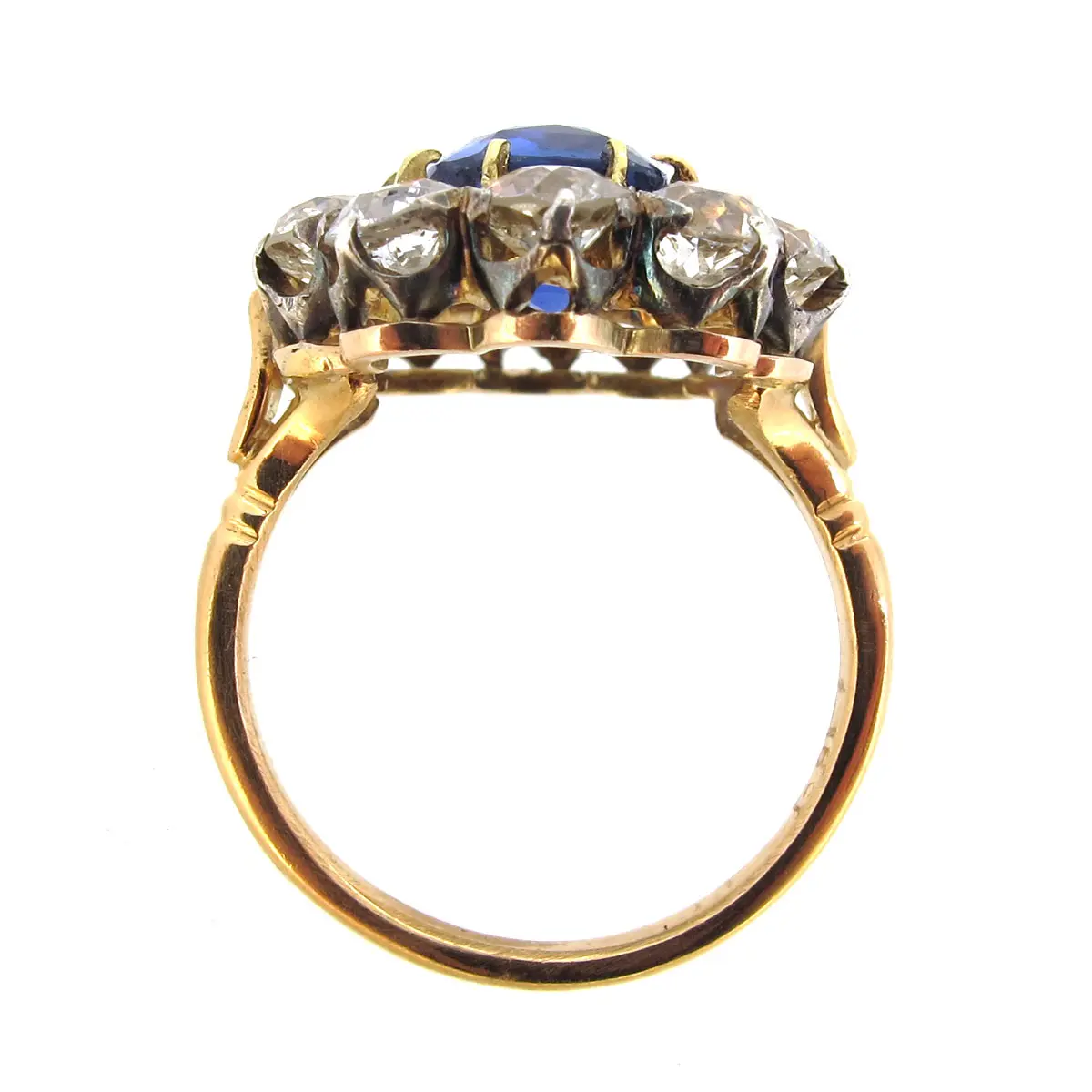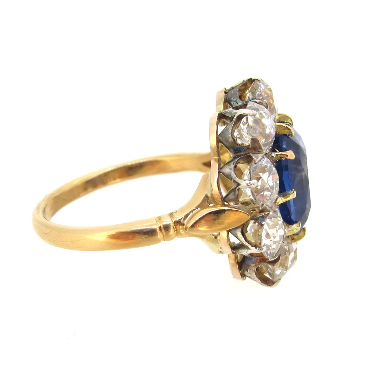 Antique Ceylon Sapphire & Diamond Cluster Ring