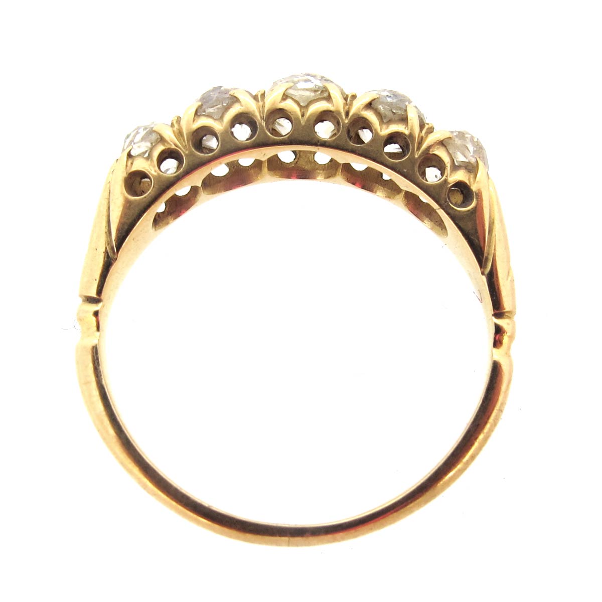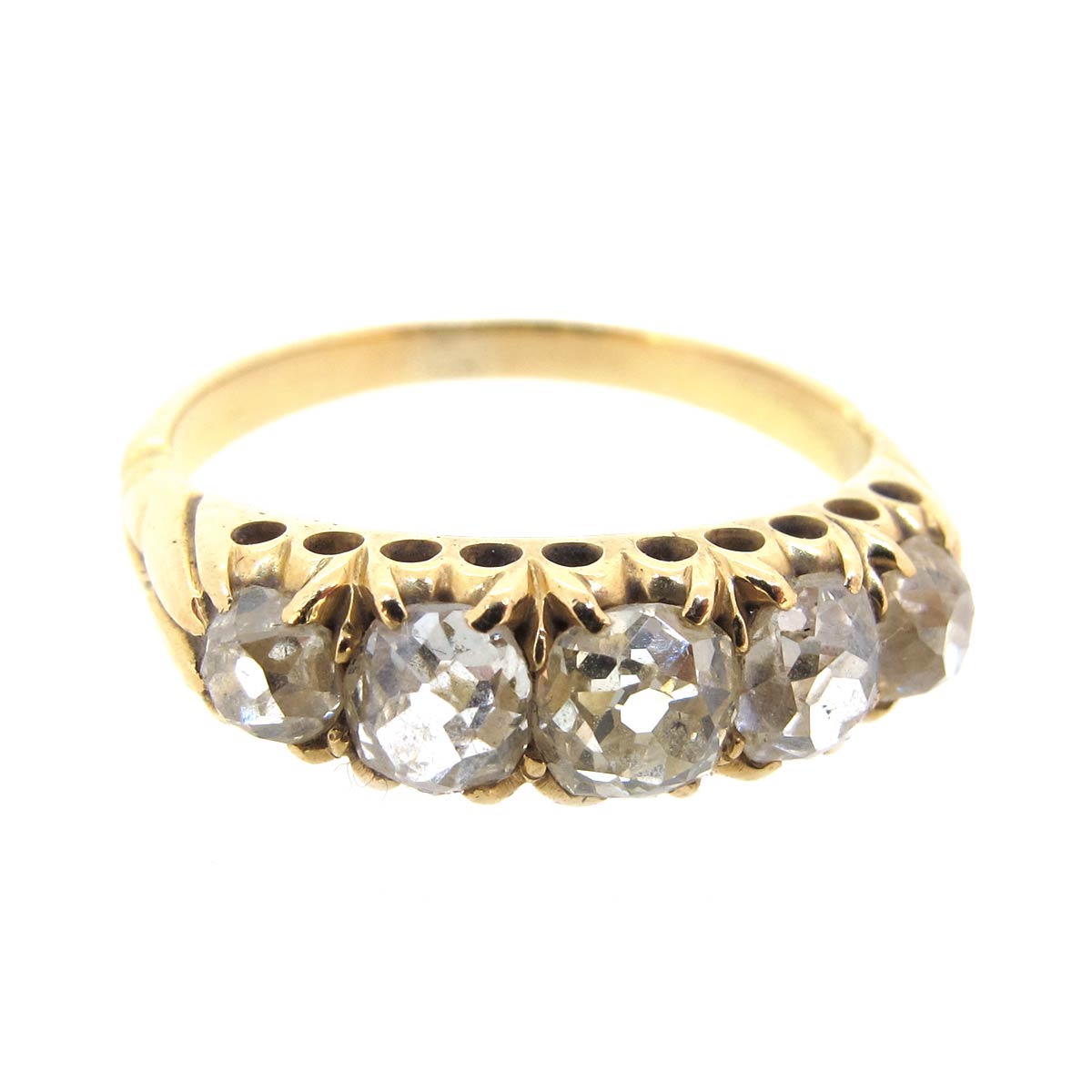 Antique Victorian 5 stone old mine cut diamond ring. Set in 18 carat gold.
