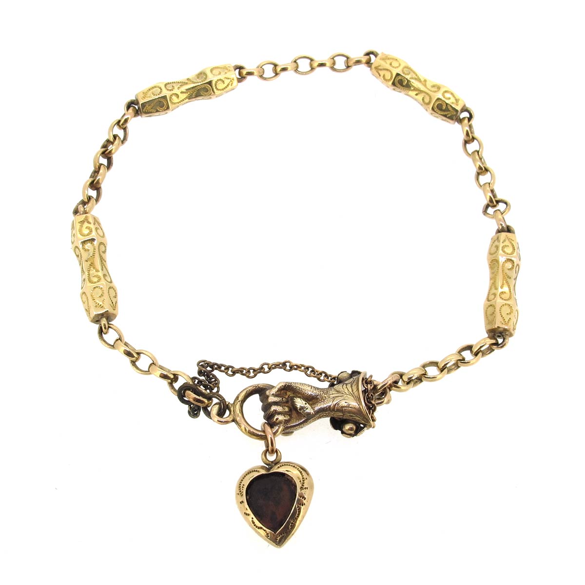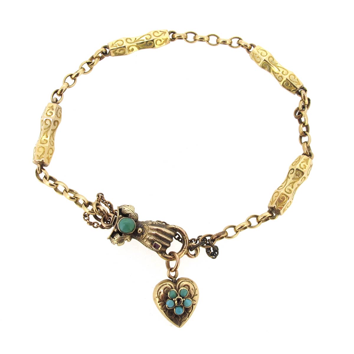 Antique Gold & Turquoise Bracelet with Hand Clasp & Heart Locket