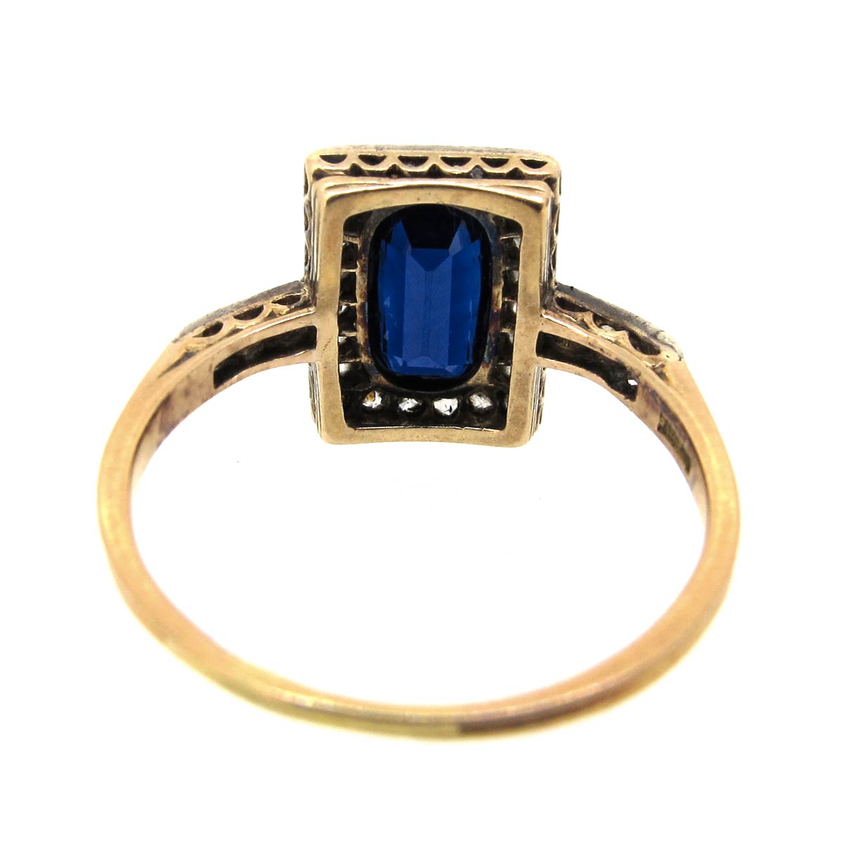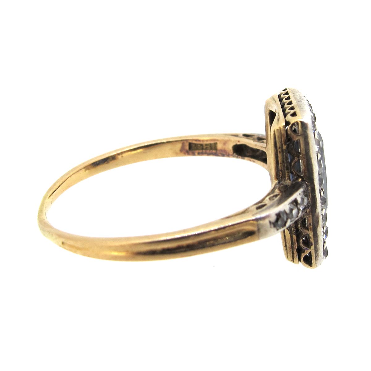 Antique Edwardian/ Art Deco period 18 carat gold, sapphire & diamond rectangular shaped cluster ring. With diamond set shoulders.