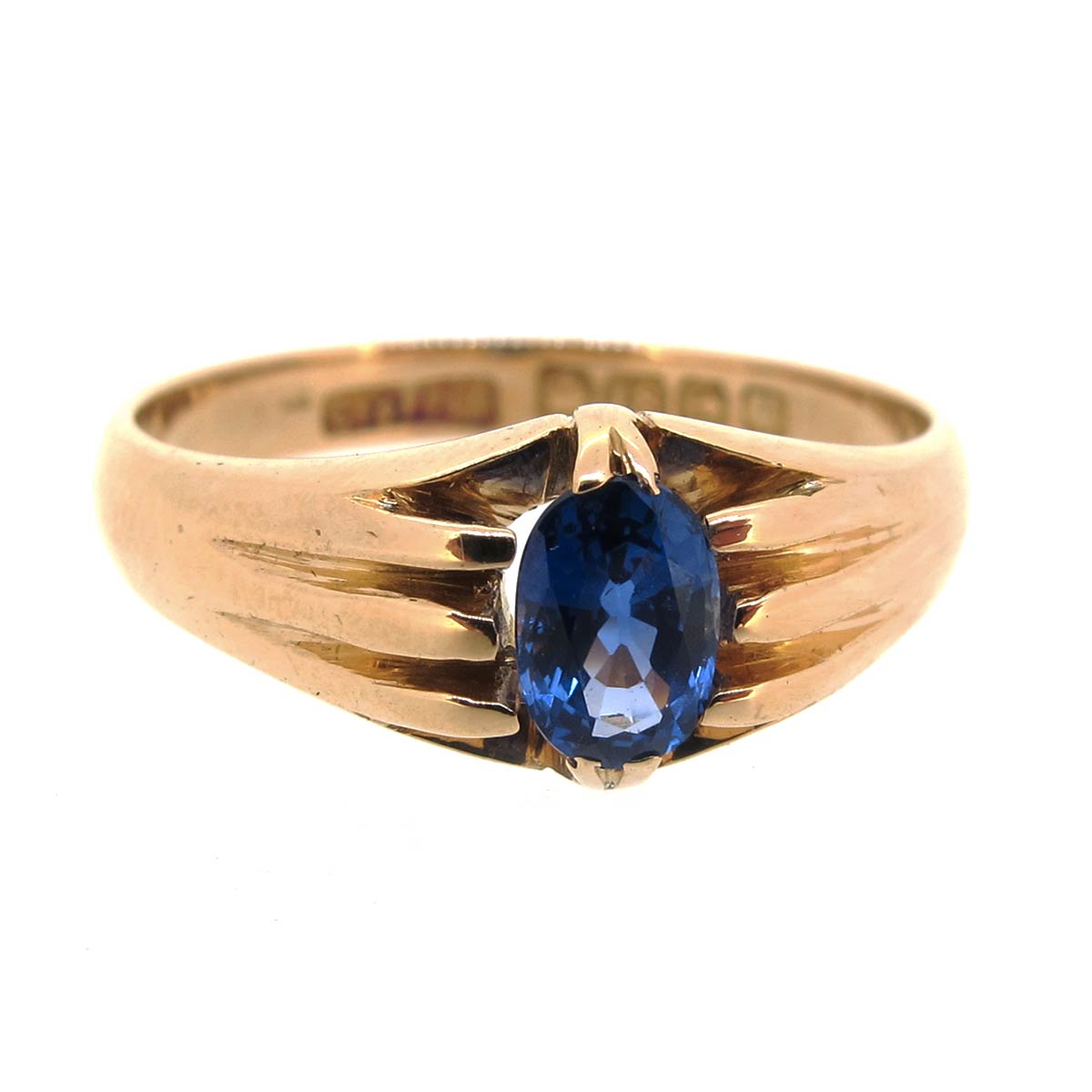 Antique Birmingham, 1920, 18 carat gold & single stone sapphire ring.
