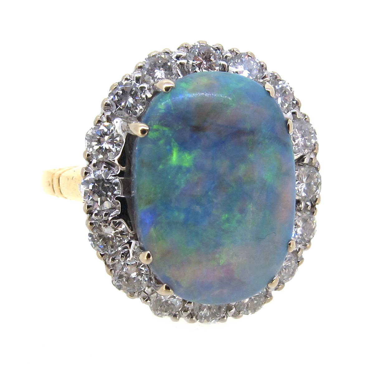 Black Opal & Diamond Cluster Ring
