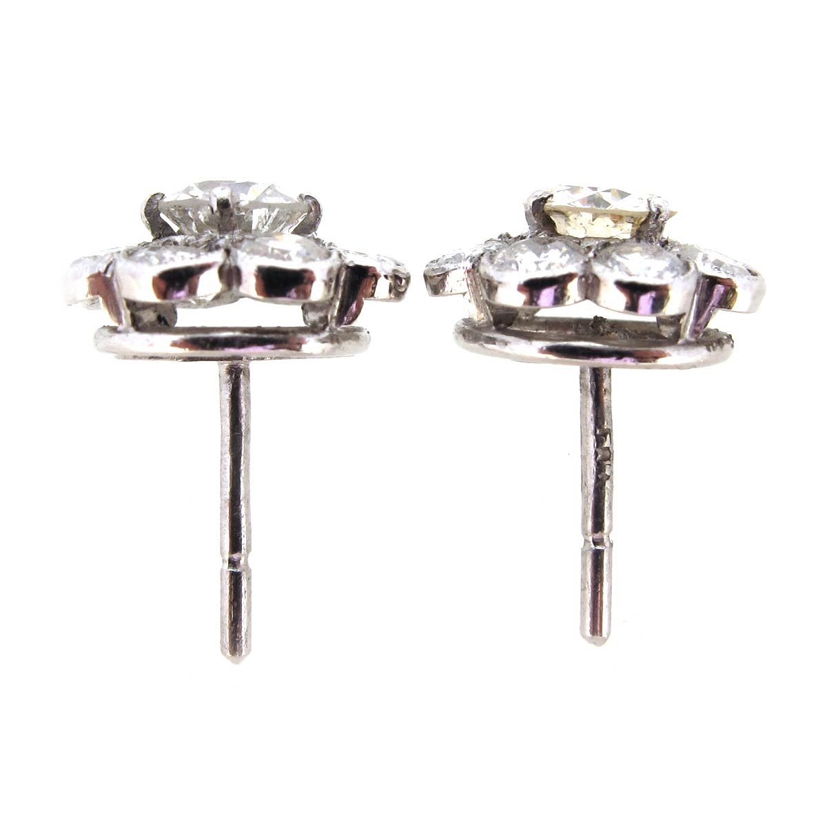 Circa 1930s/ 1940s diamond daisy cluster earrings. Set in 18 carat white gold. Total diamond weight approximately 3.50 carats.