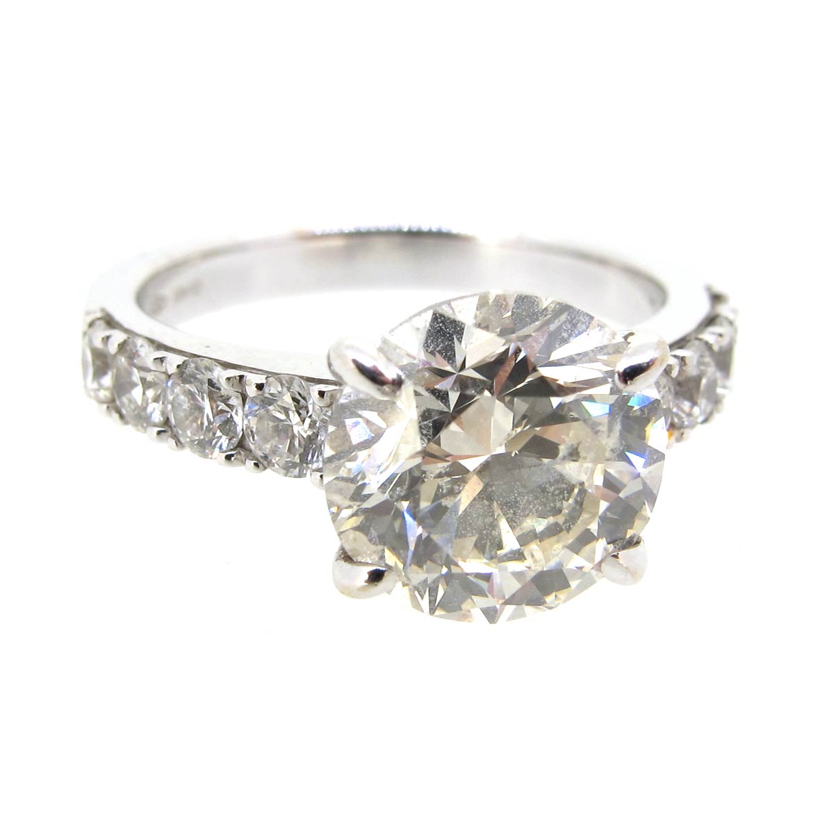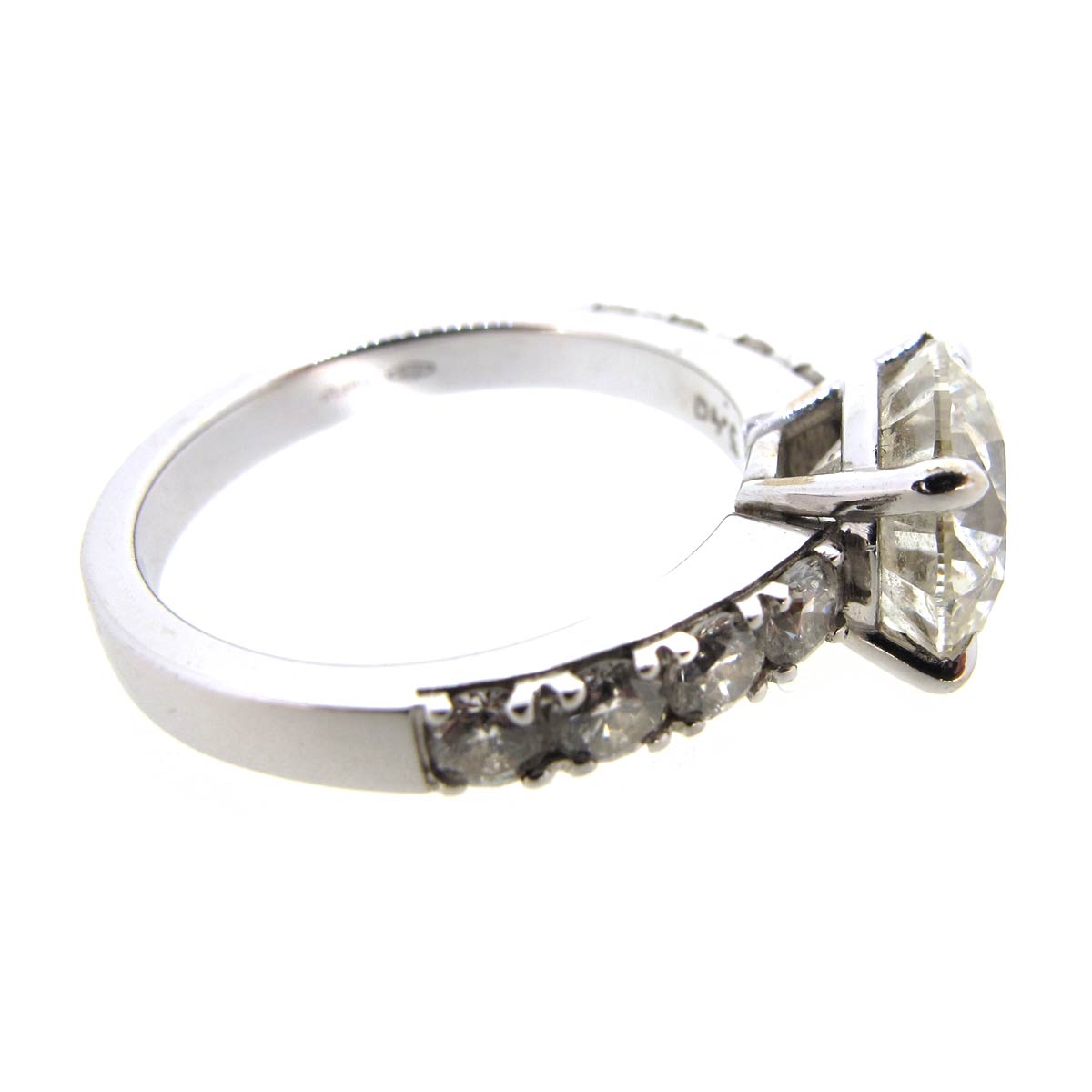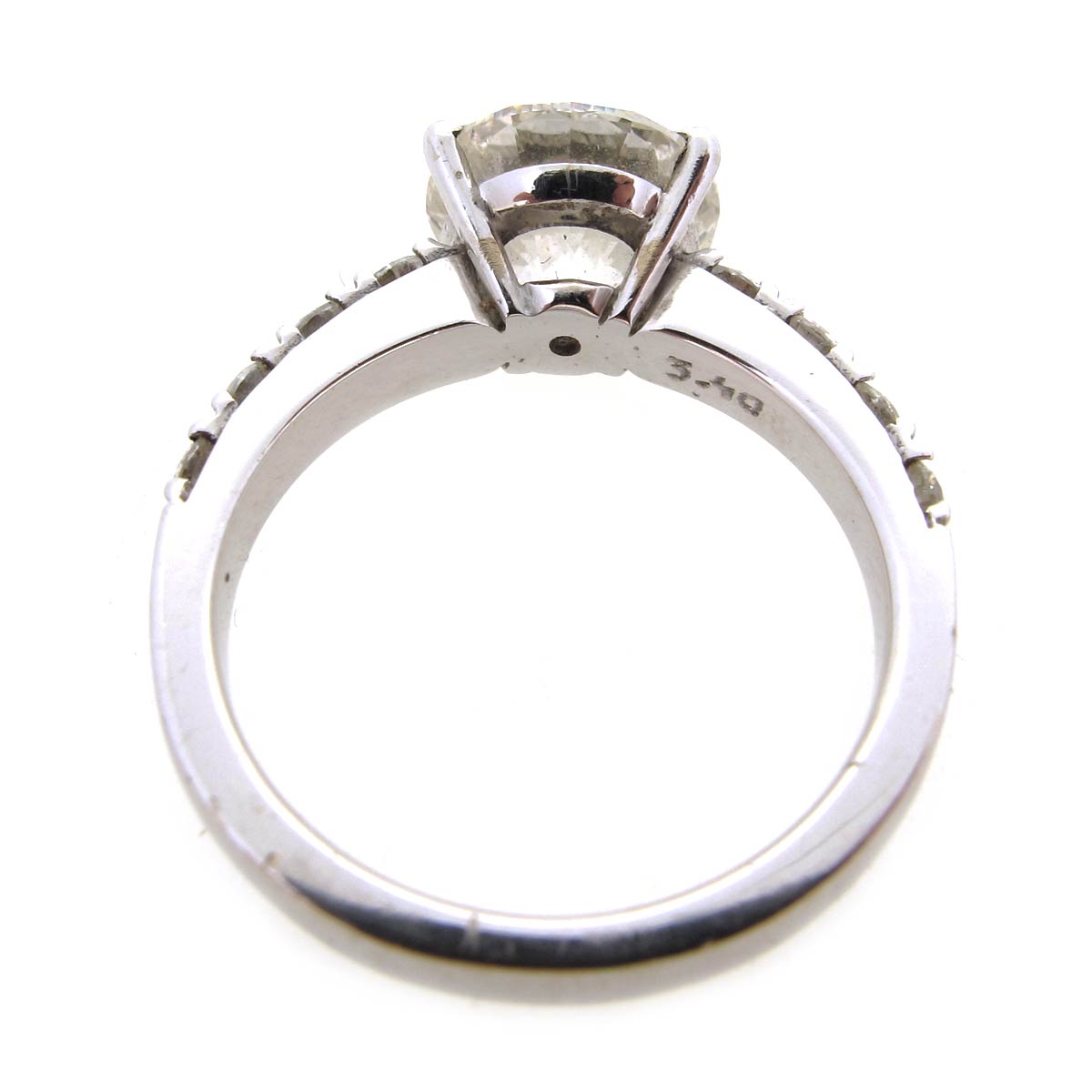 Certificated 3.40 carat, G colour, SI1 clarity diamond solitaire ring. With 4 diamonds of approximately .10 carats each set to either shoulder. Set in 18 carat gold.