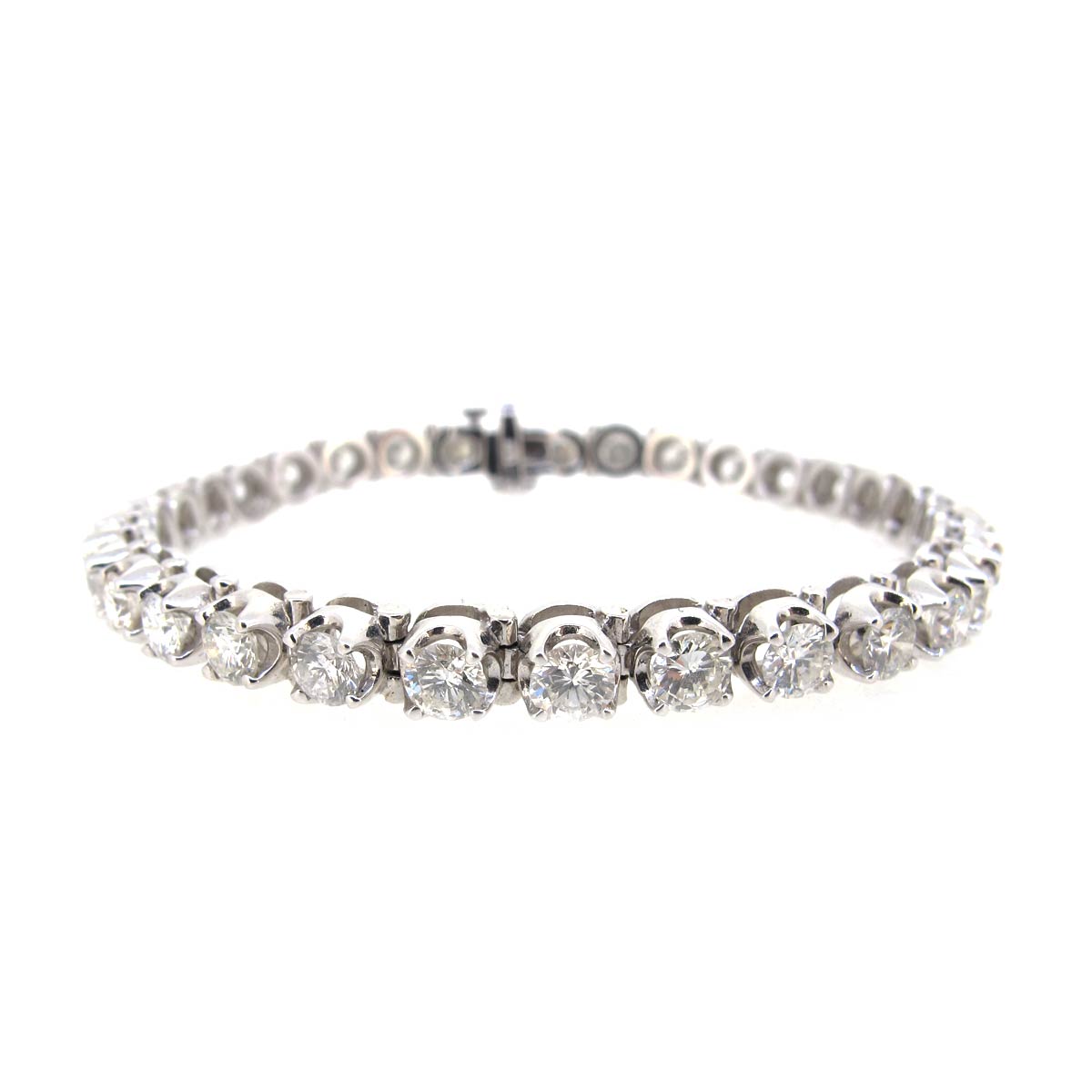 Vintage diamond tennis bracelet. Total diamond weight approximately 8.25 carats. 33 diamonds of .25pts each set in 18 carat gold. Length 7″.