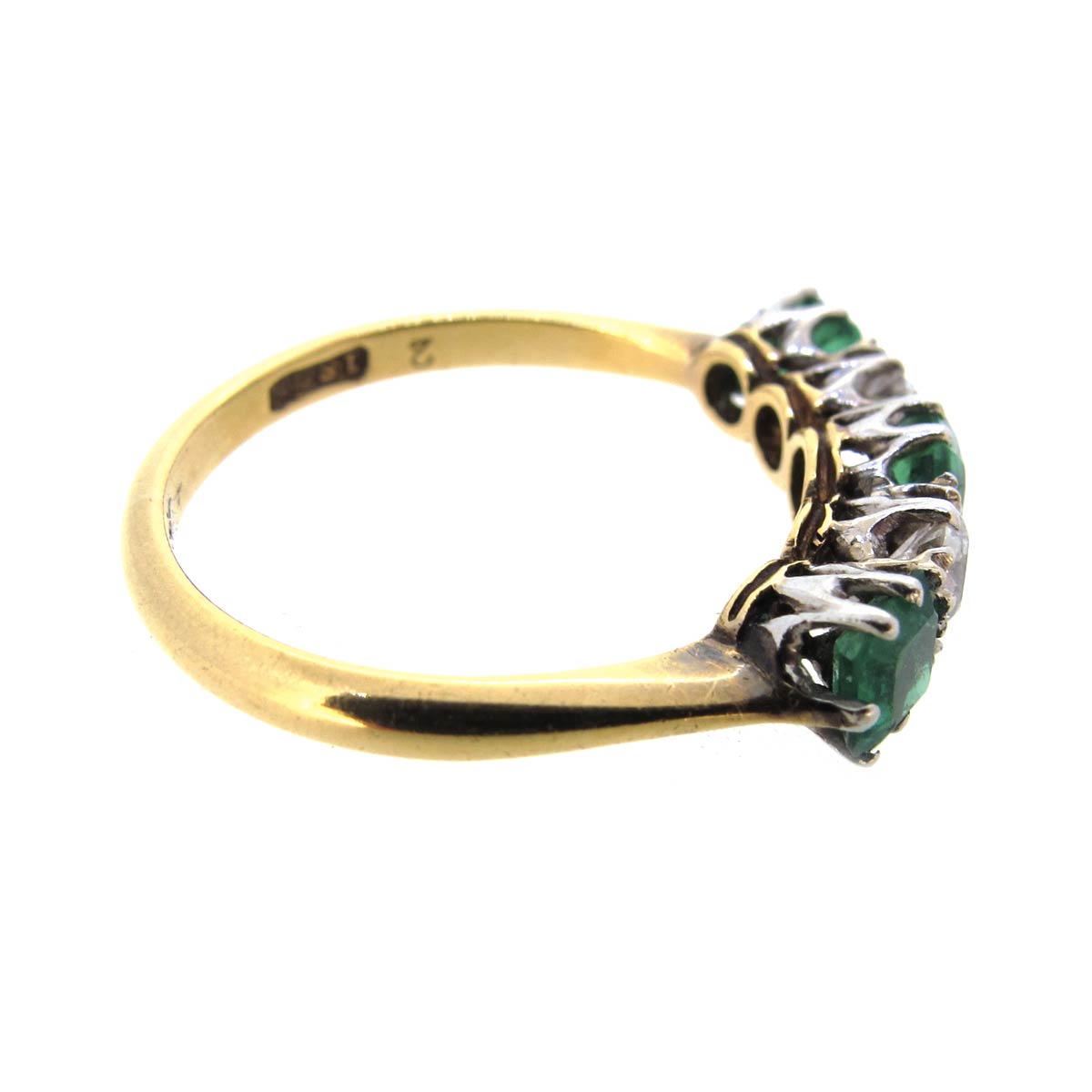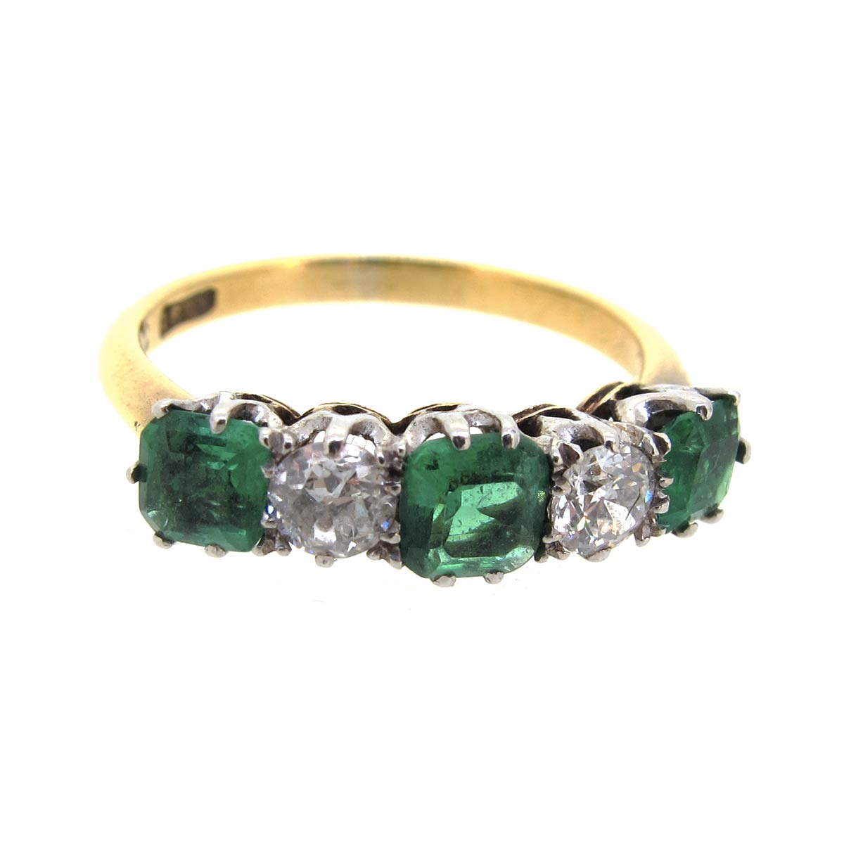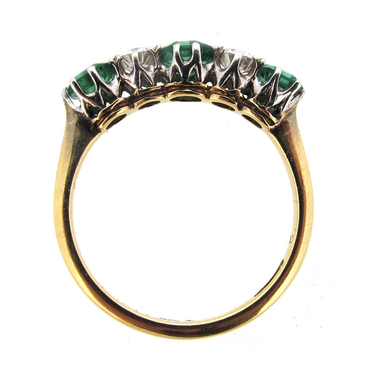 Emerald & diamond 5 stone ring. Set in 18 carat gold.