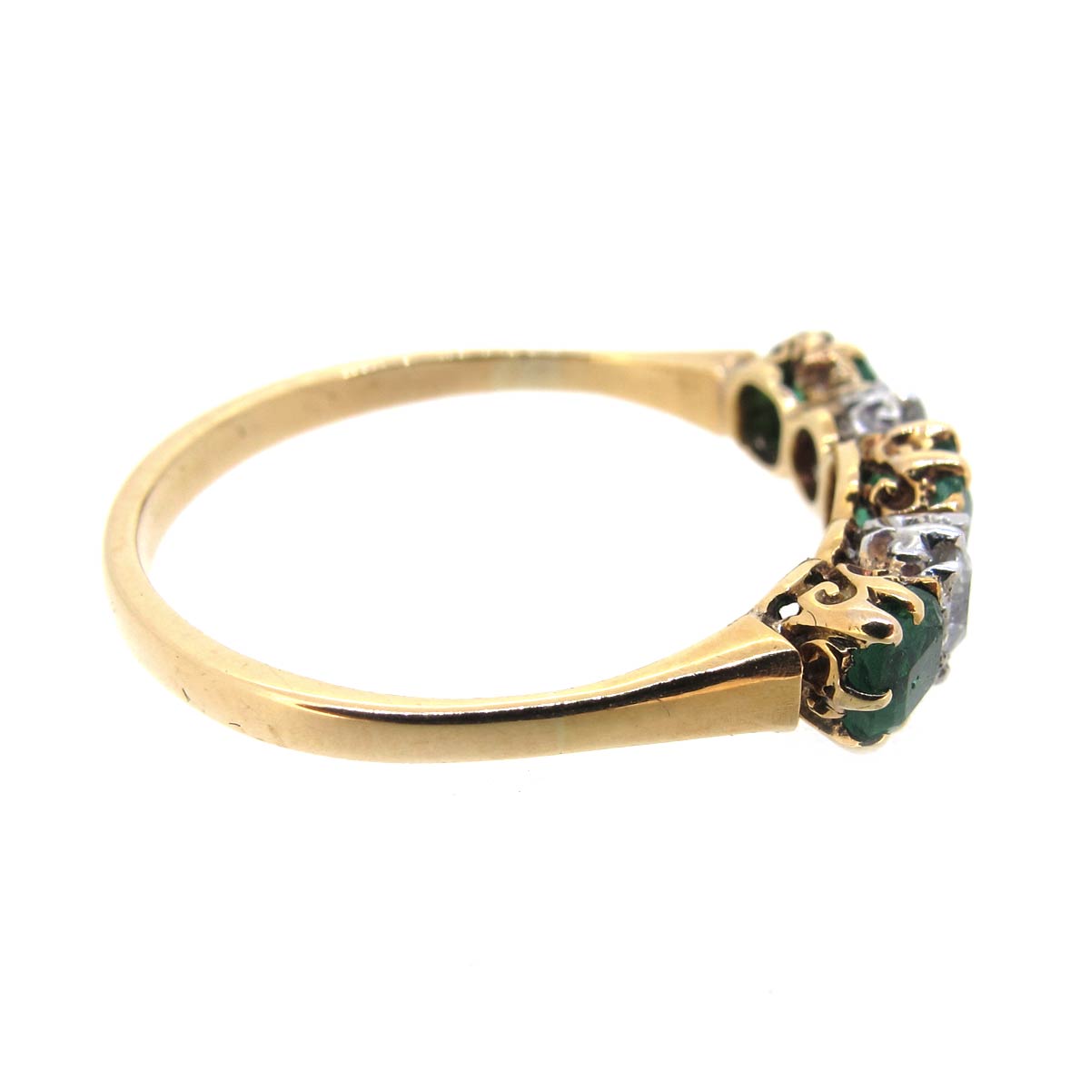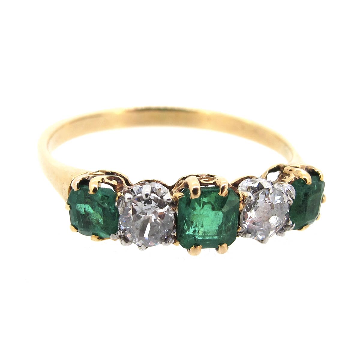 Antique 18 carat gold, emerald & diamond 5 stone ring.