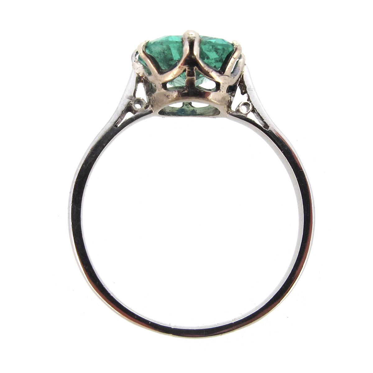 Single stone cushion cut Columbian emerald ring set in platinum. Emerald approximately 4 carats.