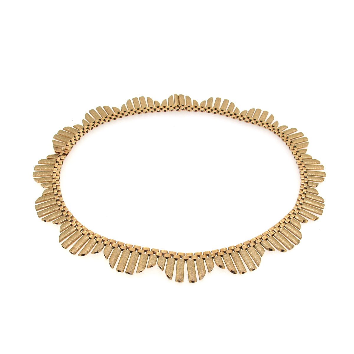 Vintage 9 carat gold Cleopatra style fringe necklace. With polished & brushed metal finish. Length 15.6″.