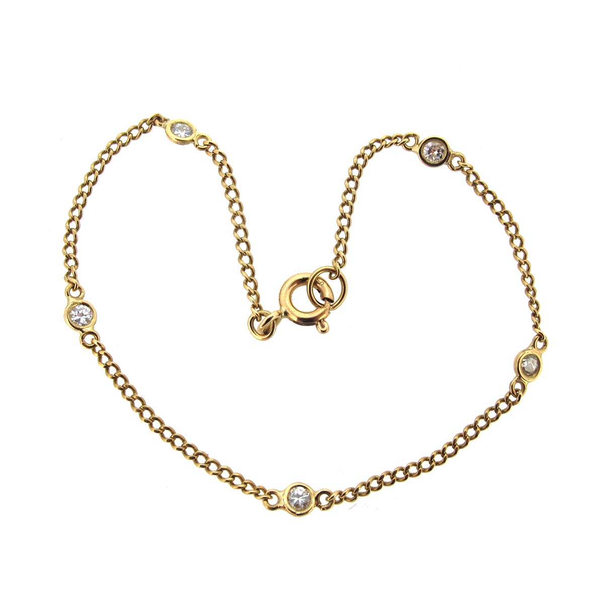 9 carat gold & diamond bracelet. 5 diamonds of approximately .10 carats each. Length 7″.