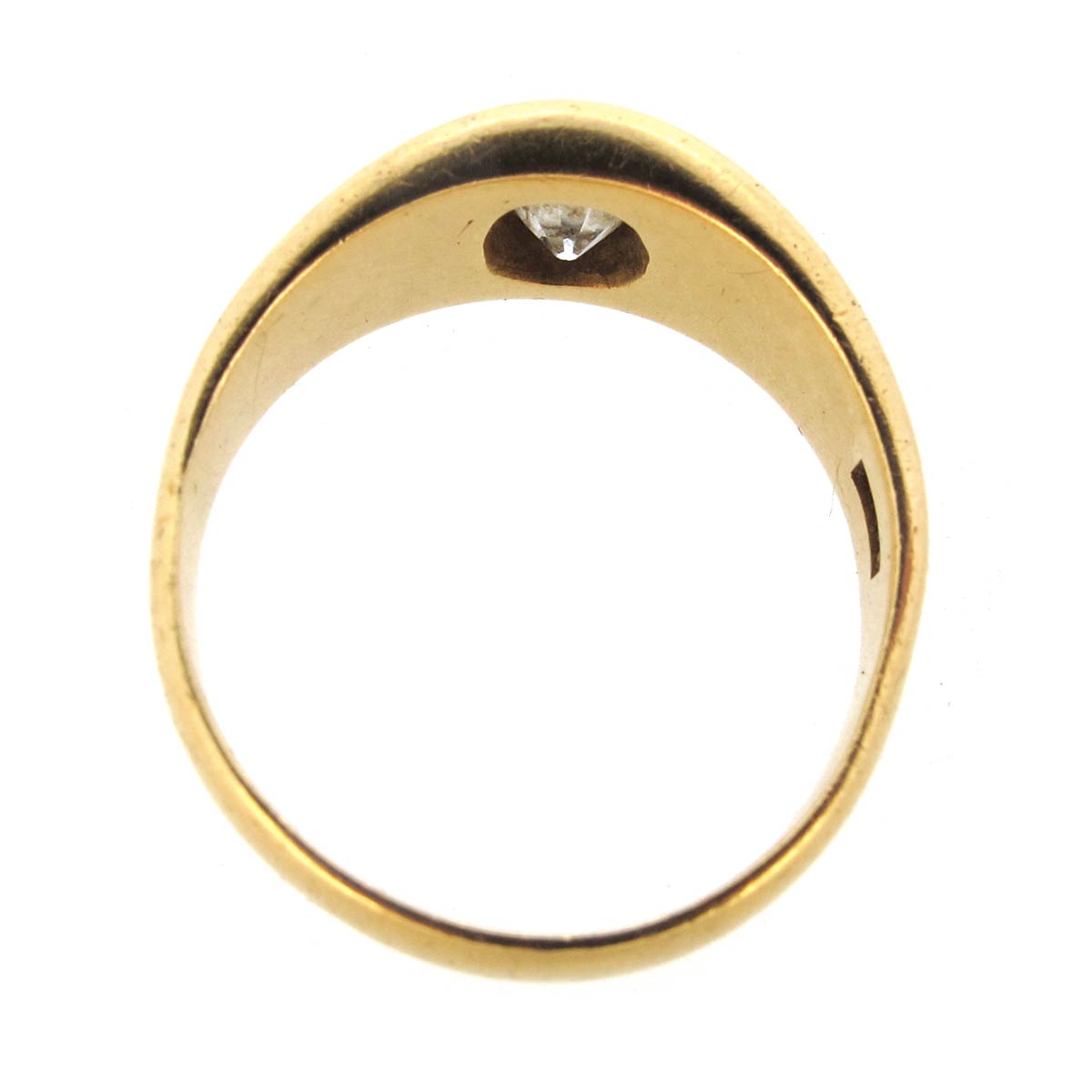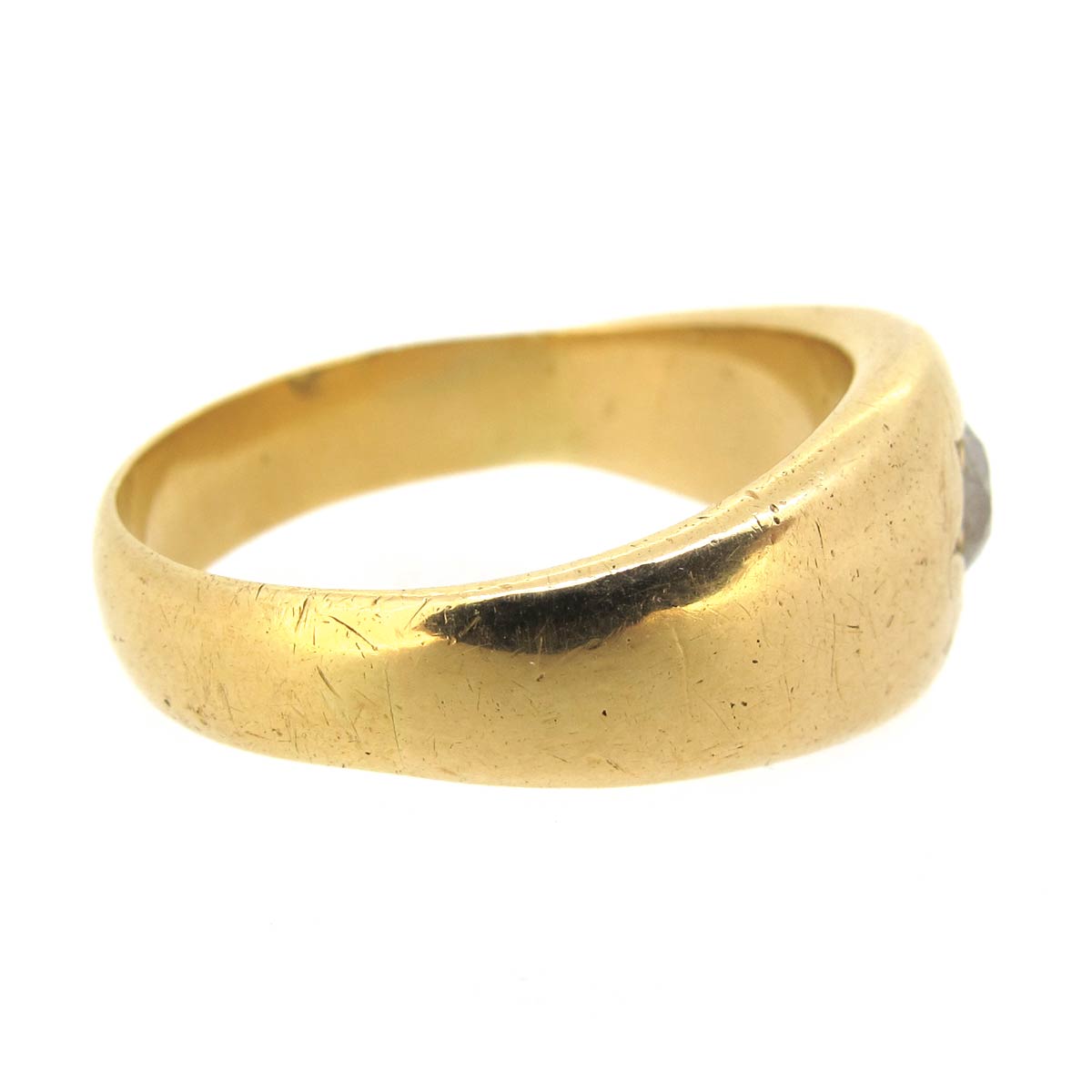 Antique Victorian heavy 18 carat gold tapered band ring with a gypsy rub over star set old mine cut diamond. Diamond weight approximately .65 carats.
