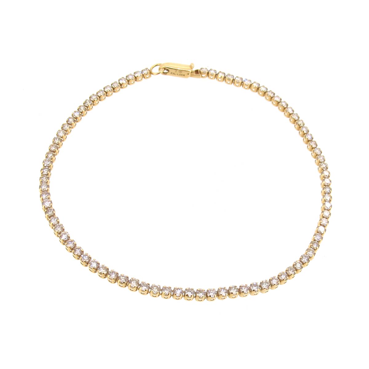 Diamond tennis bracelet set in 18 carat gold. Total diamond weight 2 carats, length 7″.