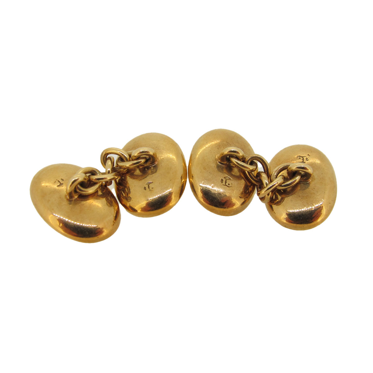Antique Art Deco period 18 cat gold, red enamel, mother of pearl & seed pearl cufflinks. With chain link fastening.