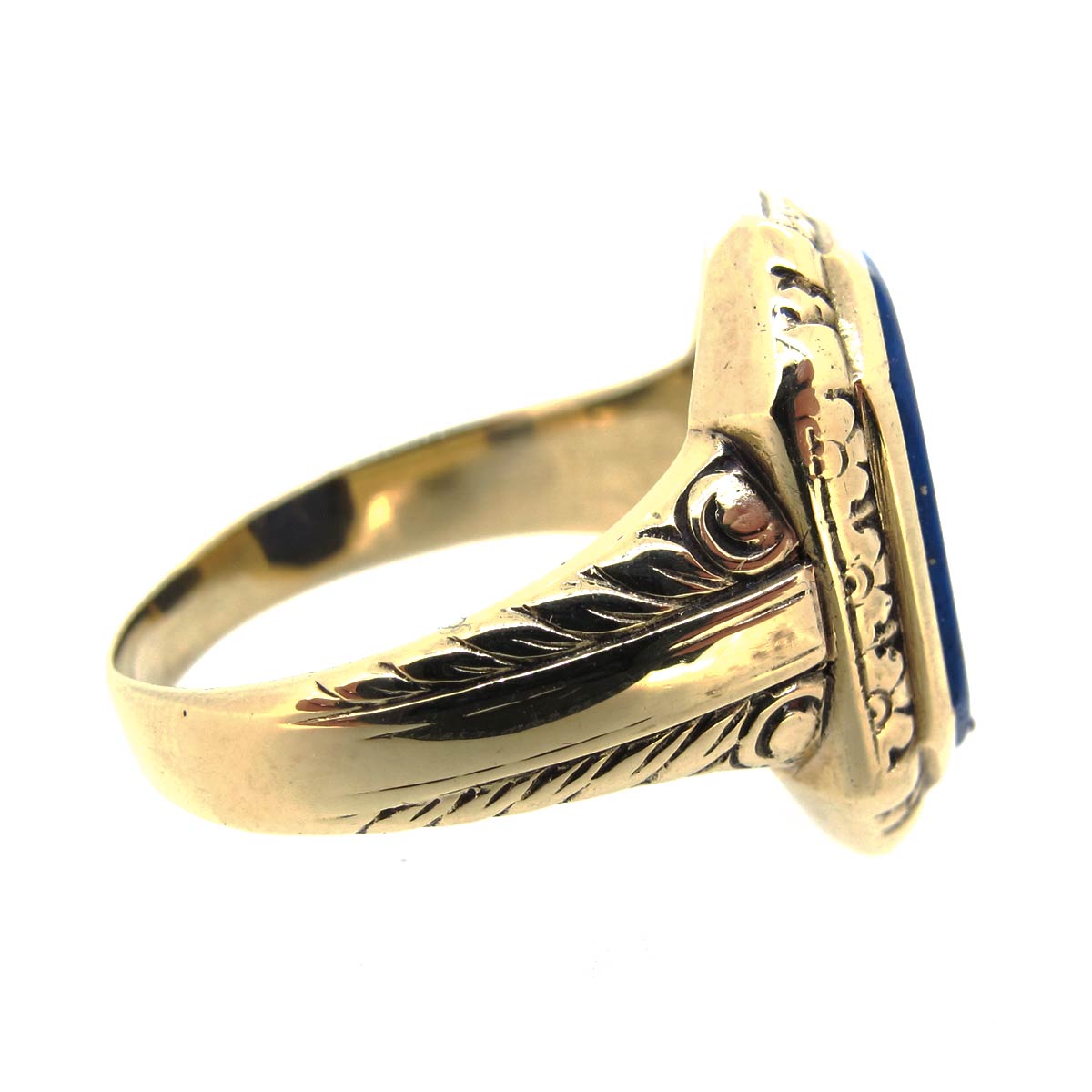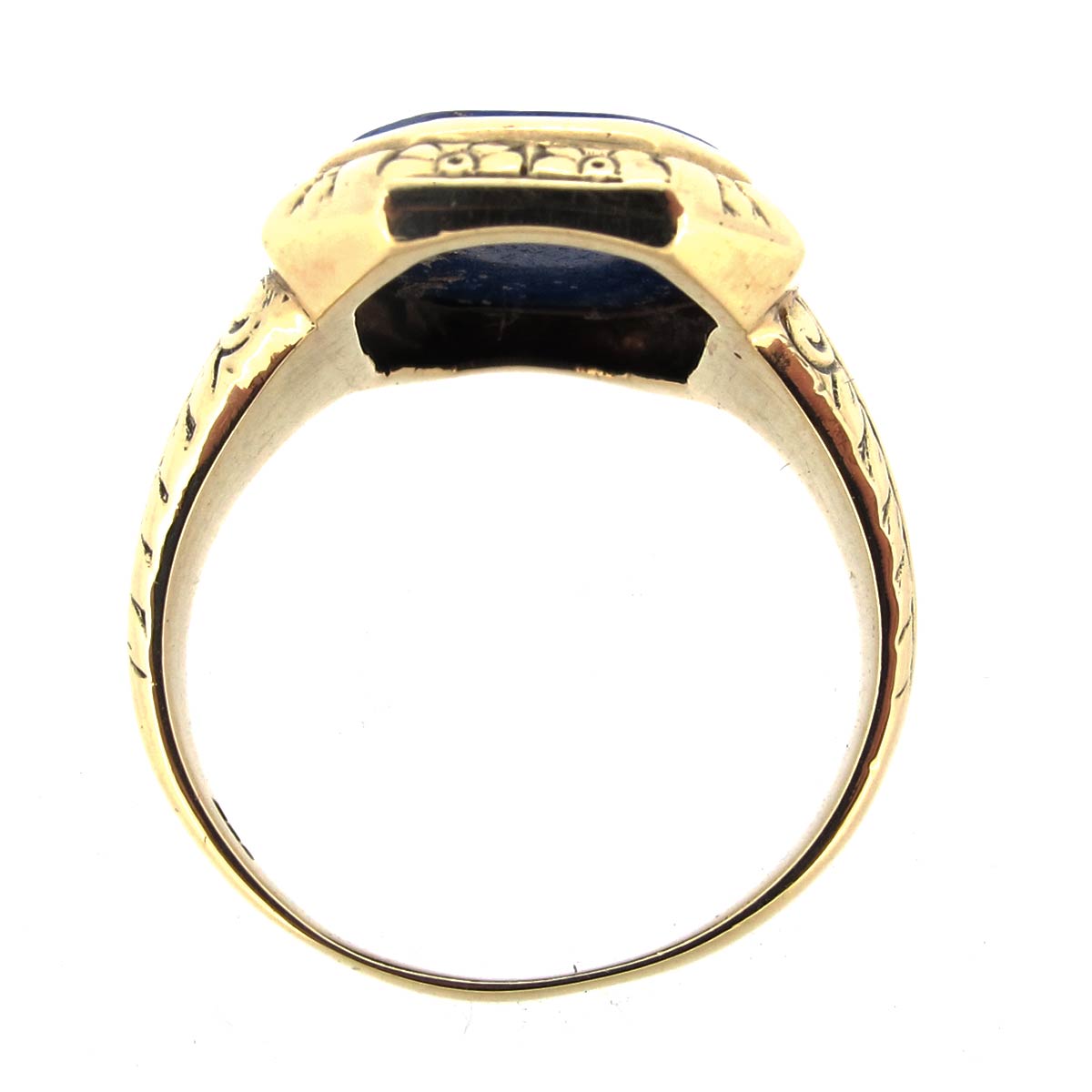Vintage 14 carat gold & lapis lazuli signet ring. Face size 19 x 16mm.