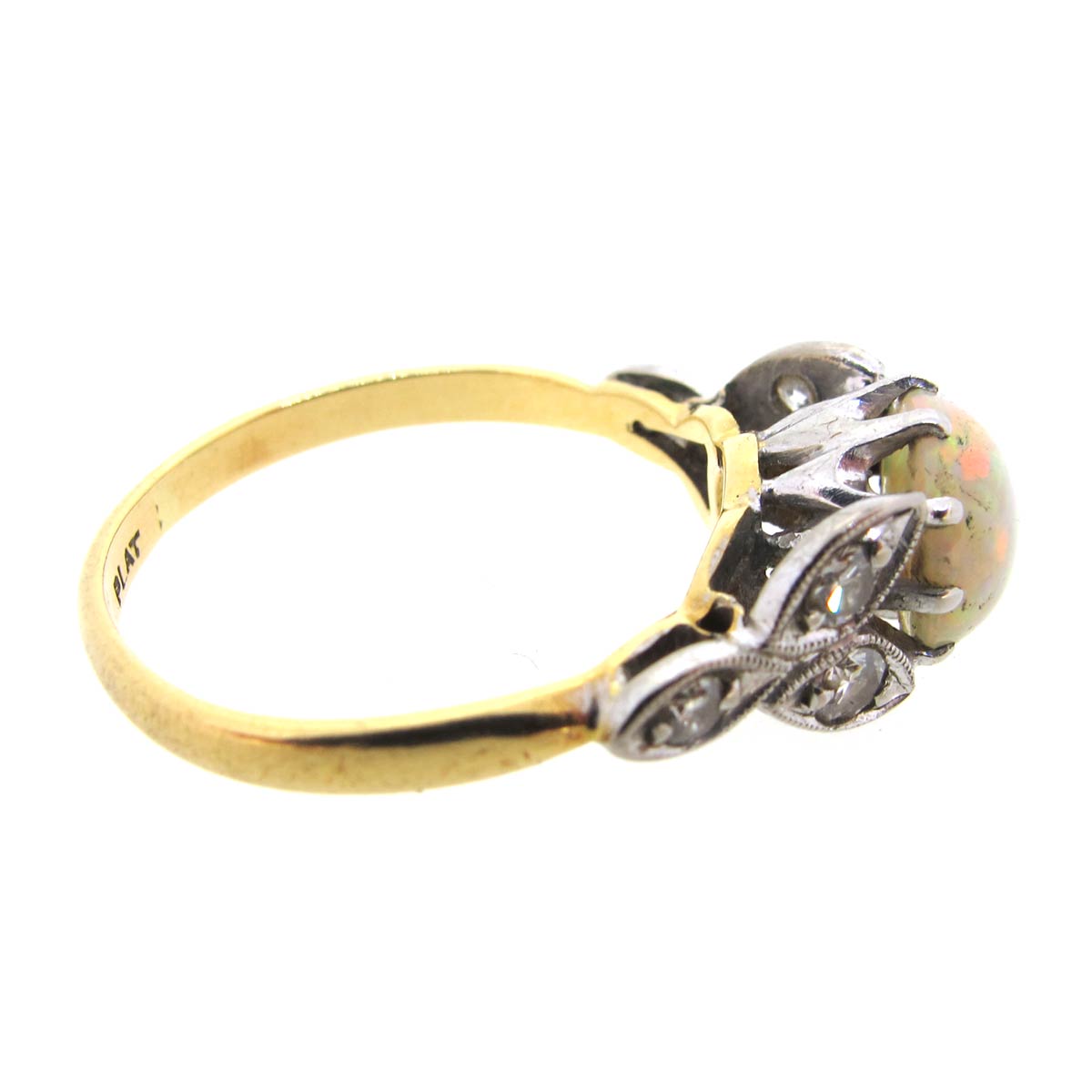Antique Edwardian opal & diamond ring set in 18 carat gold & platinum.
