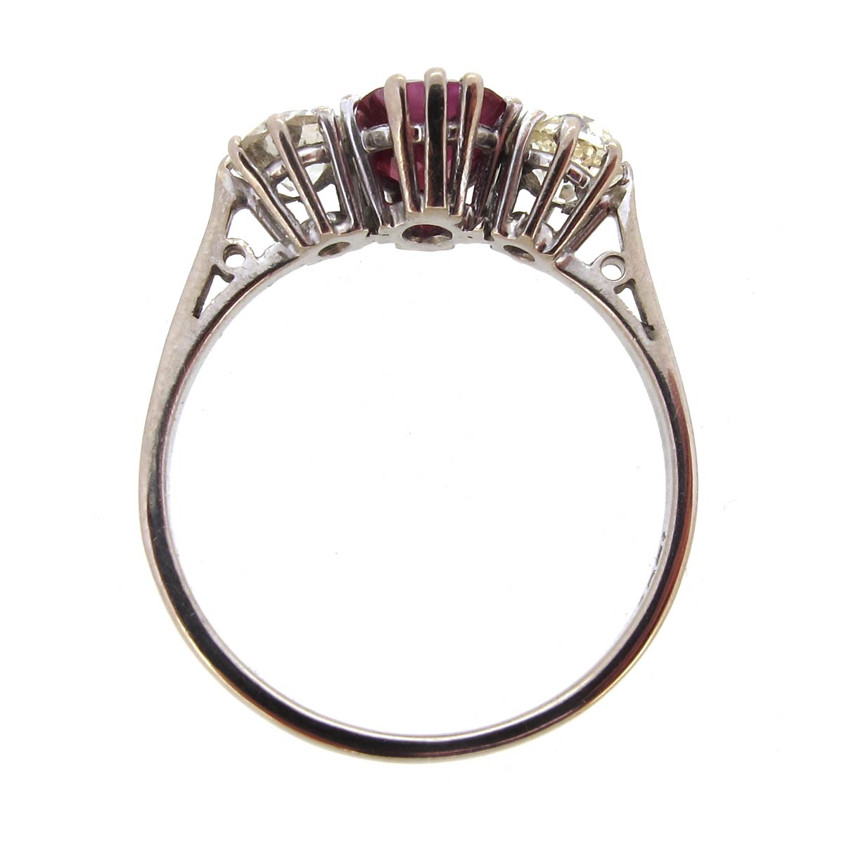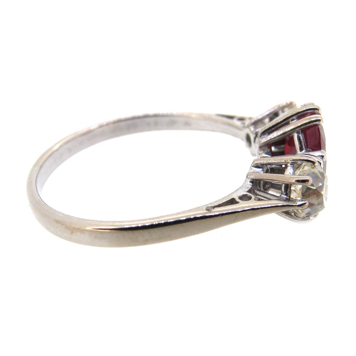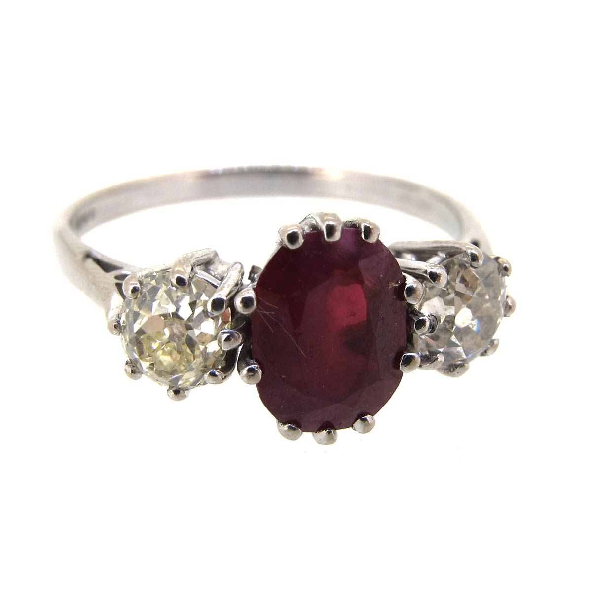 Ruby & diamond ring set in 18 carat gold. Central oval shaped ruby weighing approximately 1.50 carats, total weight of old cut diamonds approximately 0.80 carats.