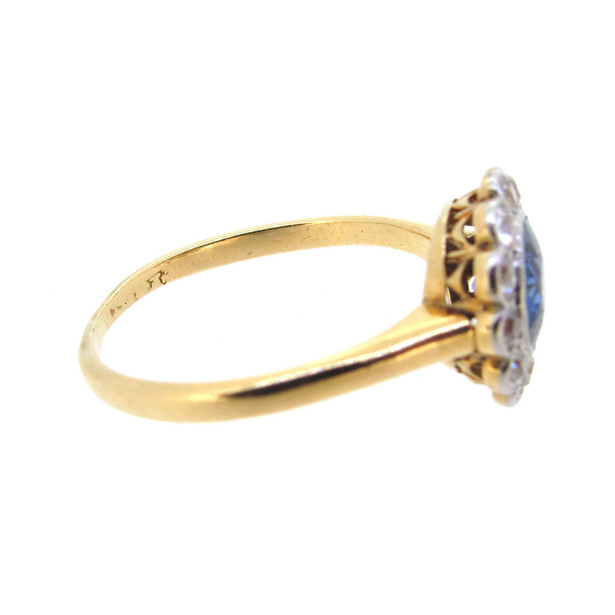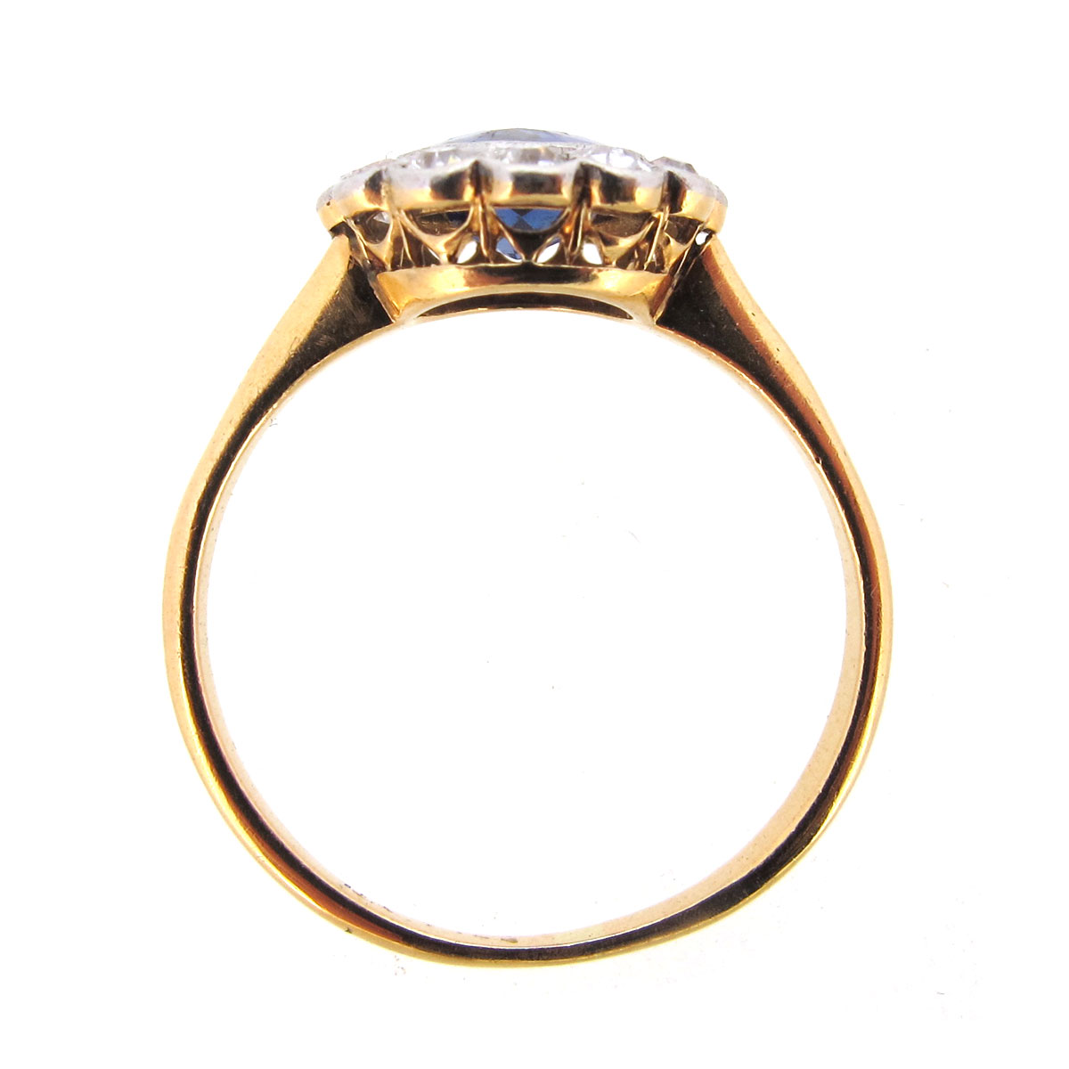 Antique Edwardian sapphire & old cut diamond daisy cluster ring. Set in 18 carat yellow & white gold.