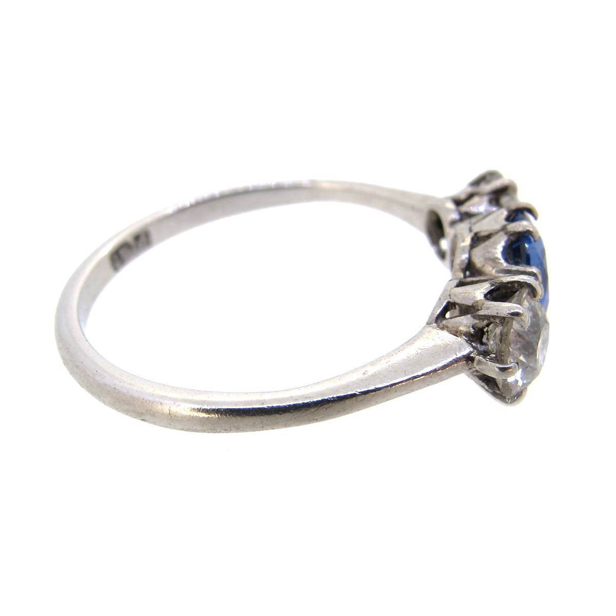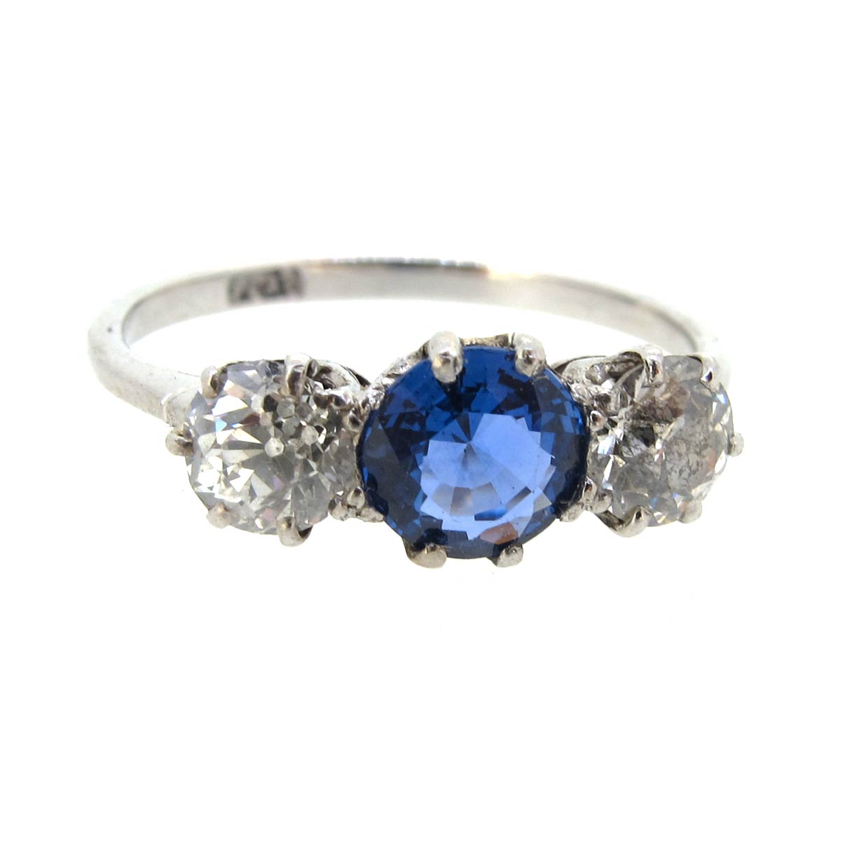 Circa 1920s/ 1930s 3 stone sapphire & old mine cut diamond ring. Set in platinum.