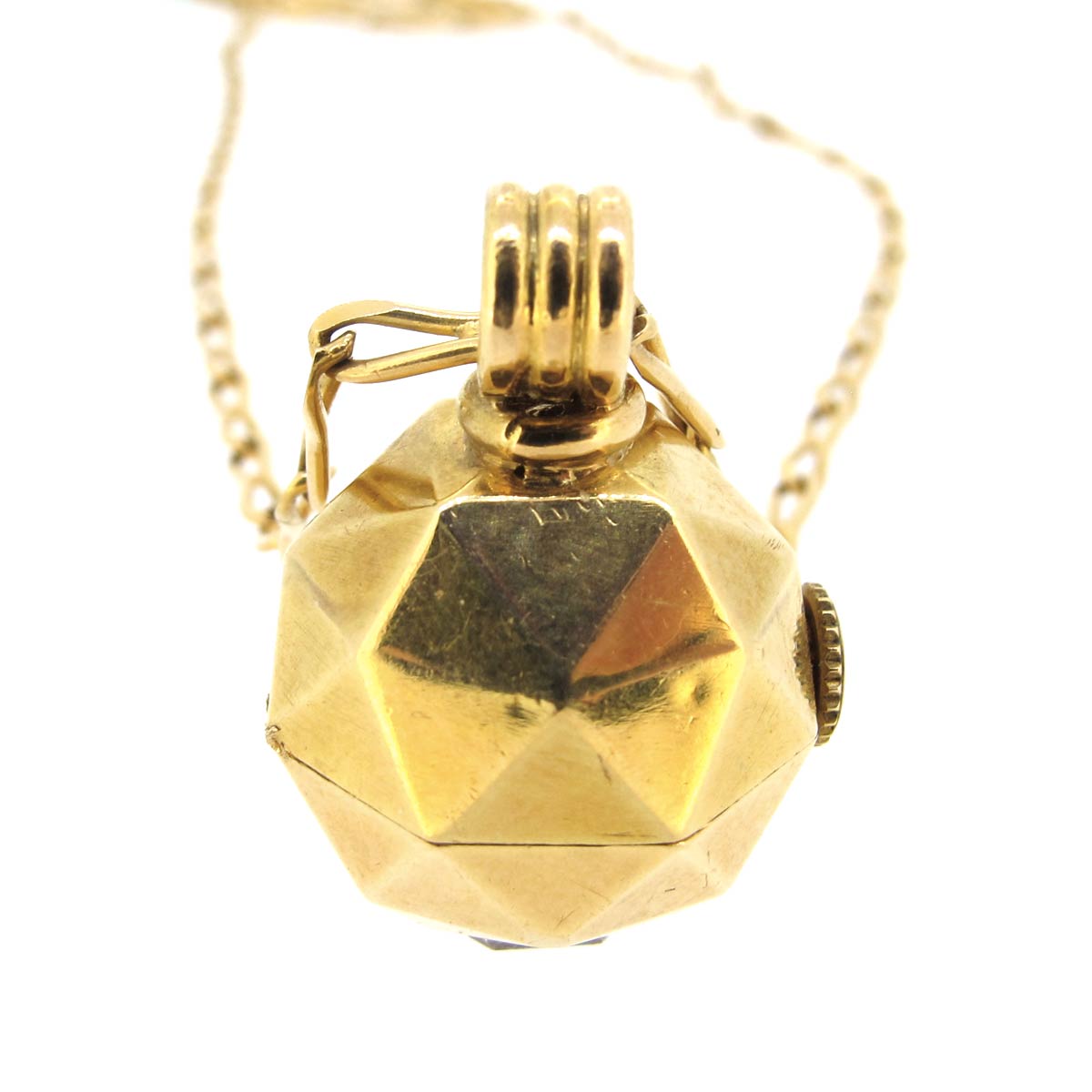 Art Deco period, circa 1930s/ 1940s, 18 carat gold Van Cleef & Arpels ball watch pendant necklace. On an 18 carat gold chain. Watch fully serviced & in good working order.