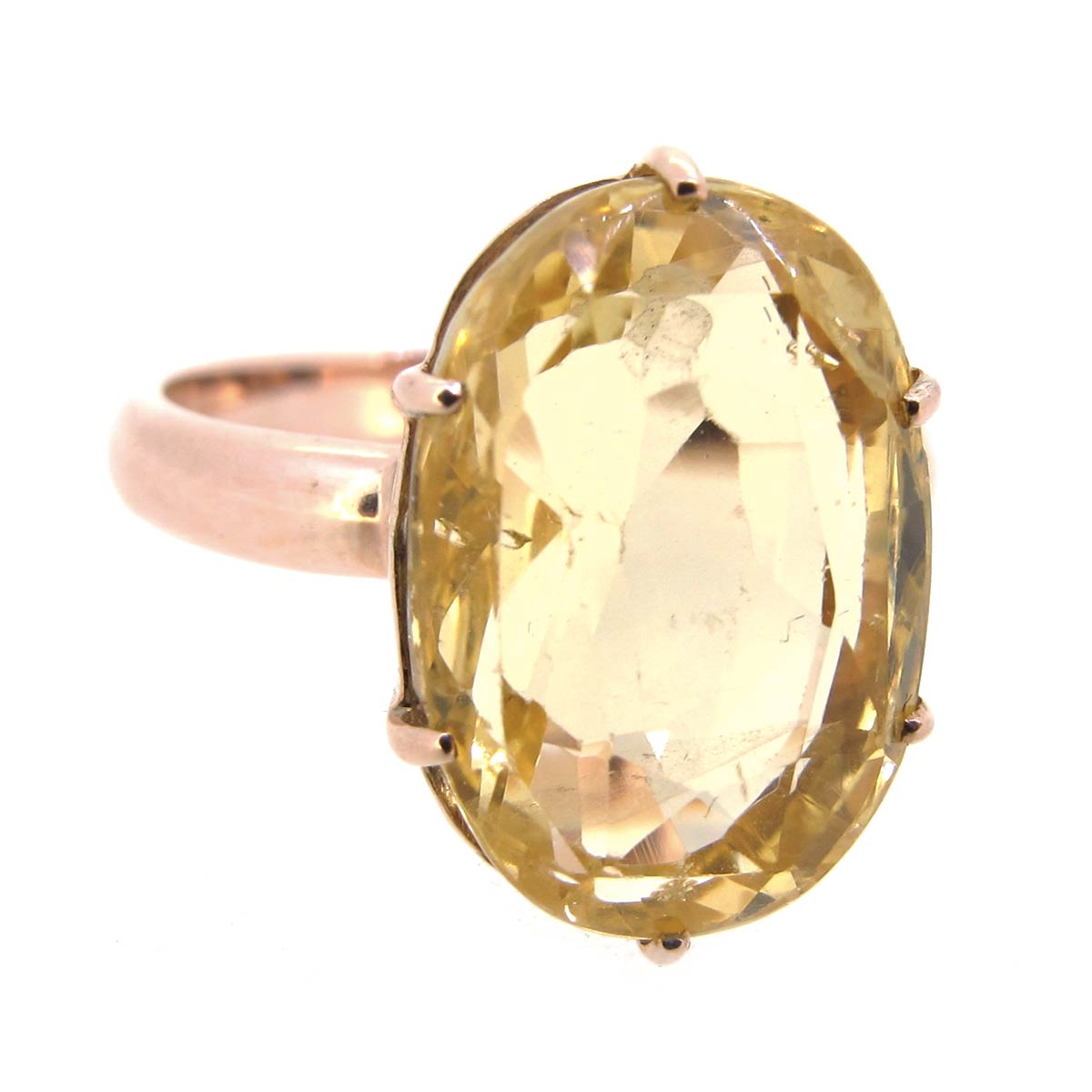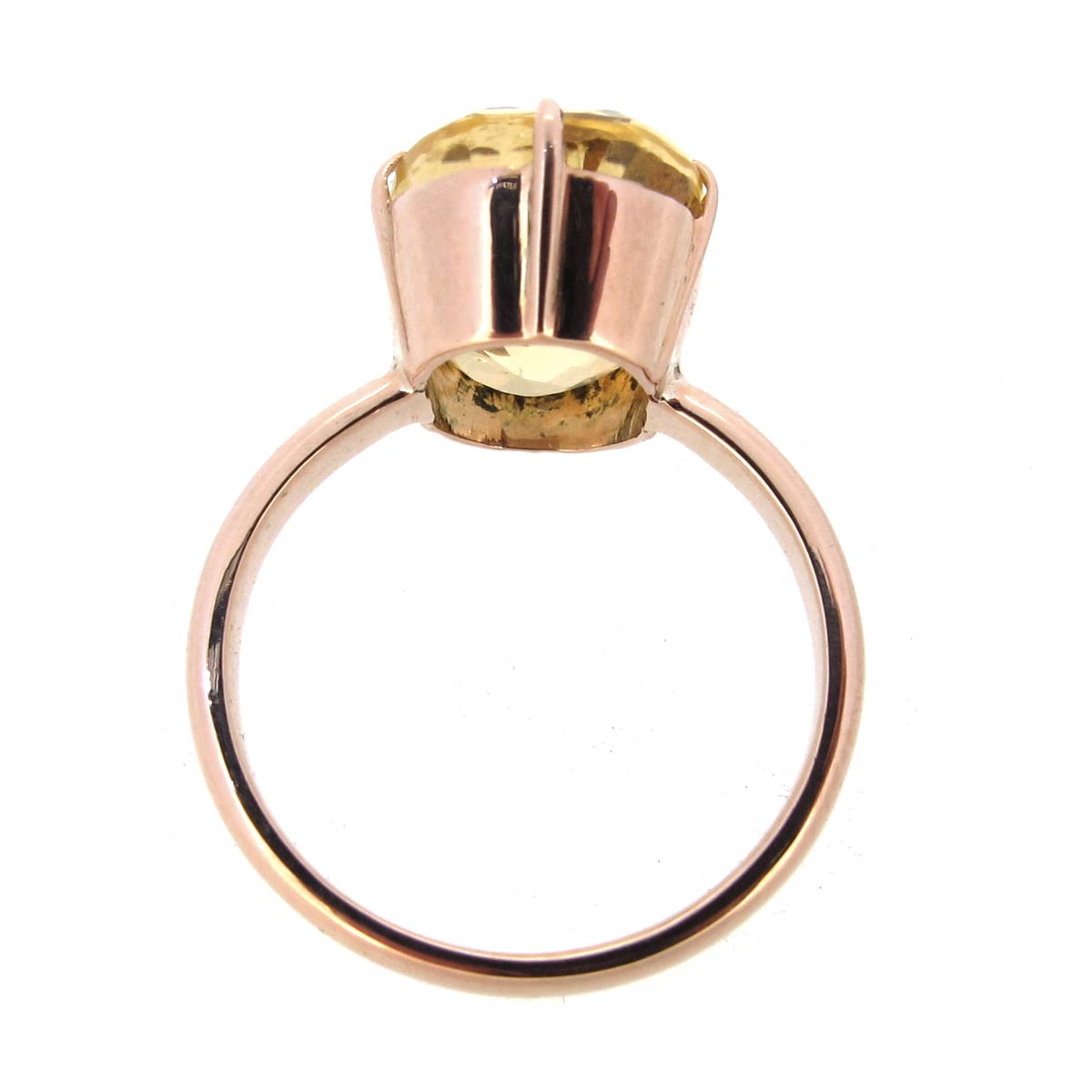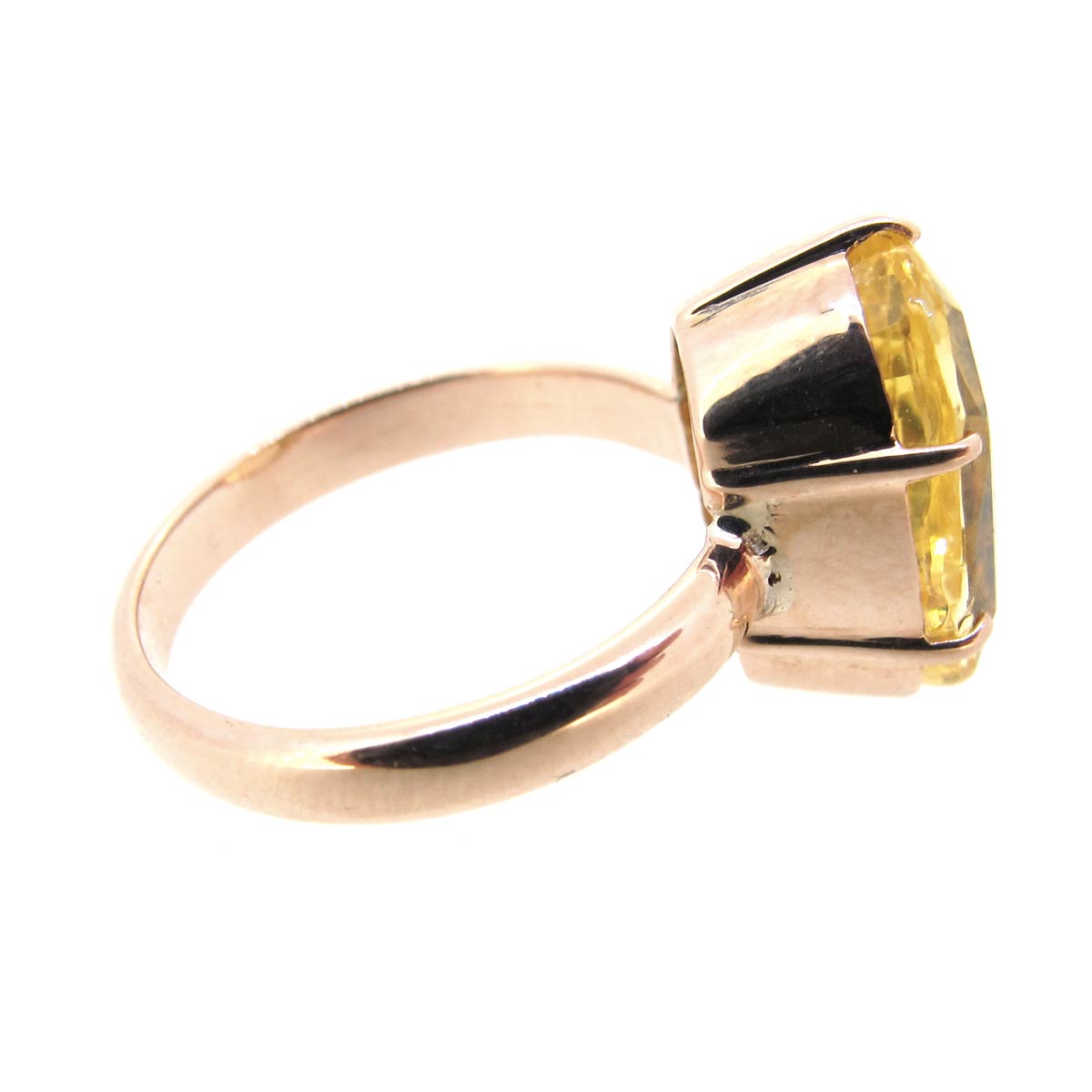 Single stone solitaire yellow sapphire ring. Certified Ceylon sapphire weight 6.40 carats. Set in 9 carat gold.